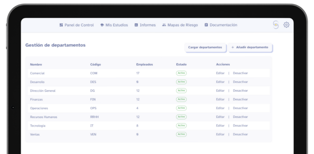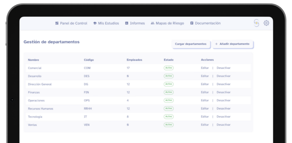 - Protocolos científicos reconocidos (COPSOQ, entre otros)